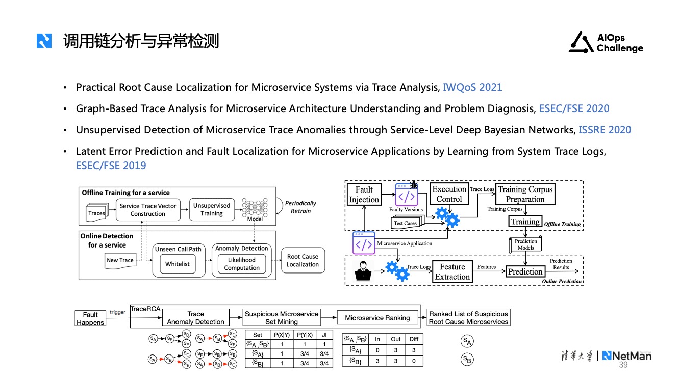 调用链的分析与异常检测。调用链有监督方法如FSE2019,无监督方法如ISSRE2020。具体细节大家可以阅读原文。