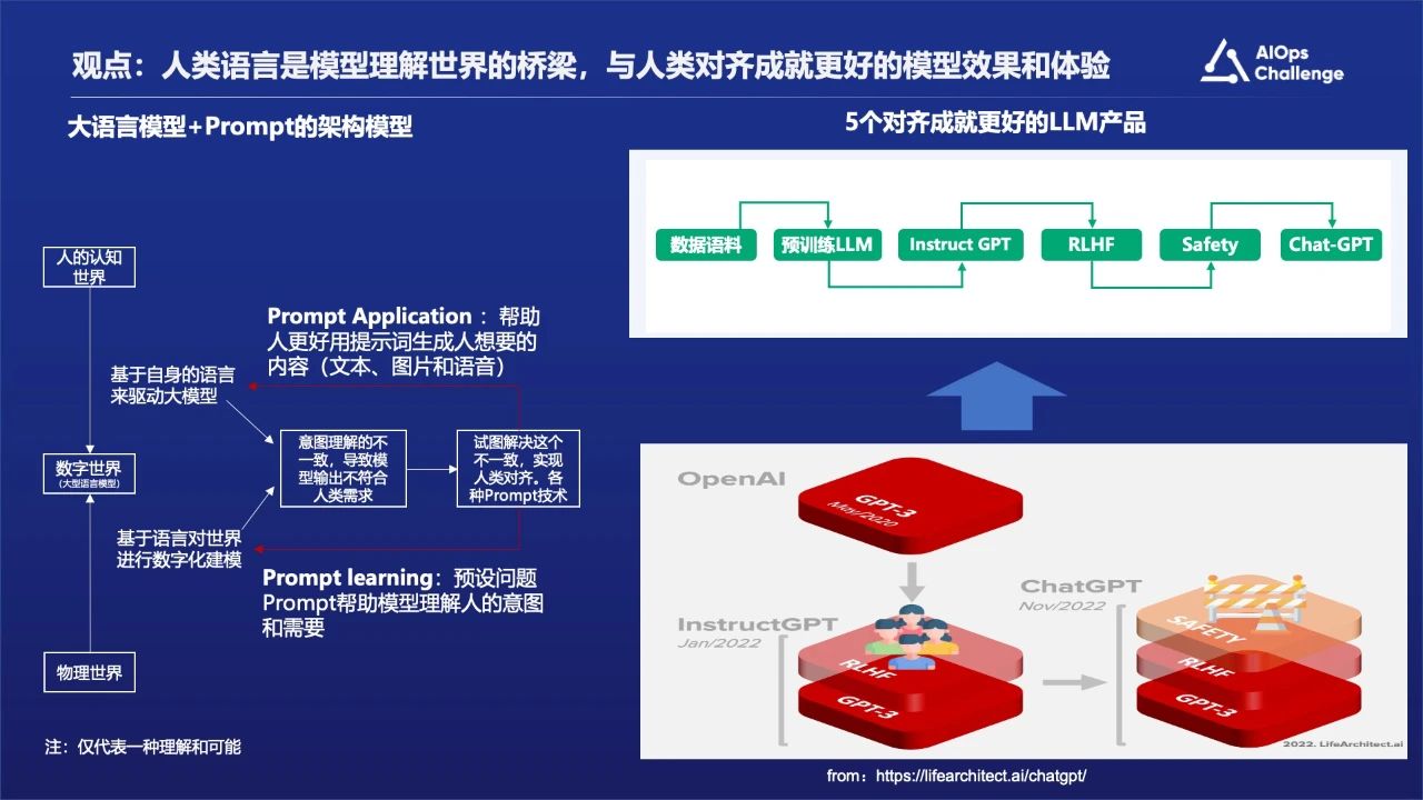 现在大语言模型非常火热,之所以会出现这样一个能够理解自然语言世界的模型,其本质上是通过自然语言对整个物理世界的一种映射,建立的是一种数字世界,所以它是能够理解真实的物理世界,包括我们的真实运营环境。